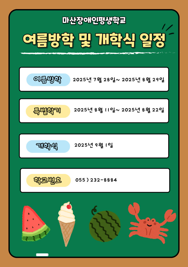 마산장애인평생학교 여름방학 안내문 작성자 관리자 쪽지보내기 메일보내기 자기소개 아이디로 검색 전체게시물 쪽지보내기 메일보내기 자기소개 아이디로 검색 전체게시물 댓글 0건 조회 446회 작성일 25-07-24 16:50 본문 이 외 문의는 마산장애인평생학교 055)232-8884로 해주시면 됩니다. 목록 이전글25.09.16. 마산장애인평생학교 지역사회홍보활동 25.09.17 다음글25.08.22. 자립생활탐방교육 25.08.25